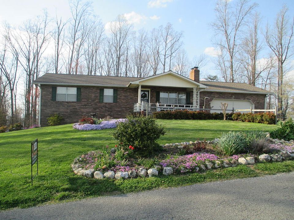 A ''WOW'' PRICE REDUCTION - Sellers already moved. MASTER, GARAGE, & LAUNDRY ON MAIN! All brick home in quiet country setting w/spectacular year-round mountain views & land adjacent to Big Ridge State Park. Extra large, covered front porch, 2 bedrooms on main w/ 2 full baths, roomy kitchen w/island, 2 car garage & laundry on main, 1 car garage in basement - both garages oversized w/storage & workshop area, carport for RV/boat/tractor, huge downstairs rec room plus 3rd bedroom & full bath, close to schools. Large covered back porch & deck up & patio down. SOLD AS IS - PRICE DISCOUNTED FOR UPDATING.