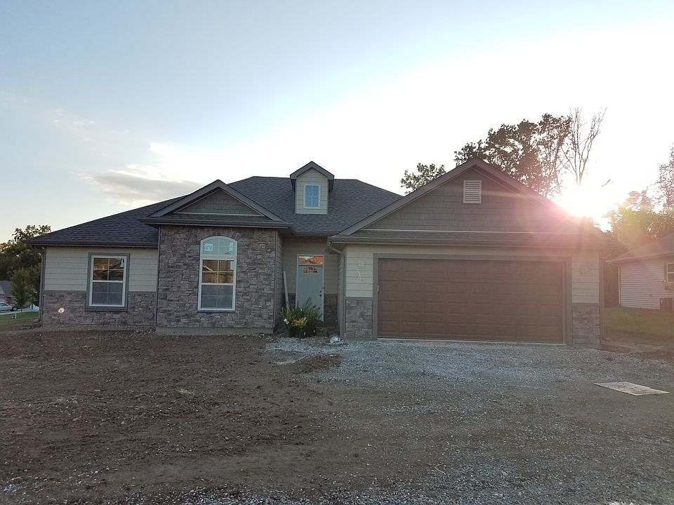 This is a spectacular 1724 sq. ft. ranch with open floor plan in Midway Crossings Subdivision. This subdivision is just minutes away from Columbia and easy access to I-70. This floor plan is 3 bedrooms and 2 bath and a drop zone for extra storage. The master bedroom has a large walk- in-closet. The laundry room is located next to the master bedroom. Electric corner fireplace with stone.Built in shelving by the fireplace. Covered patio with extended patio for fire pit area with wooded view in the back yard. Full size 2 car garage, all insulated. Wood grain stained garage door. USDA eligible home. Contact 573-445-7567 or 573-289-3280 for more information or showing. Check us out on facebook @ Robert Akin Construction & Design