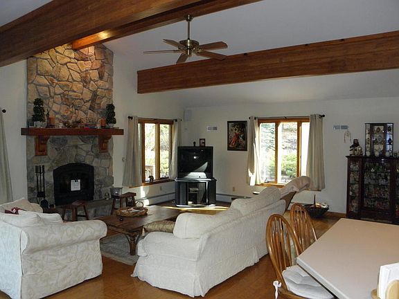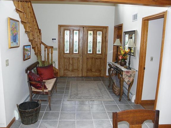 Custom Built Open concept home on private park like 2.78 acres.Gorgeous open beamed construction in quiet cul de sac one minute to private dock on lake Wallenpaupack. All the upgrades one would expect,floor to ceiling stone FP in Great room wrapped in Anderson windows for full visibility to outdoors,vaulted ceilings lead to Kit and DR all with hardwood flooring. Mstr BR/private bath suite on 1st floor with easy access to huge rear deck.Full basement,2 car garage, whole house Generac system.