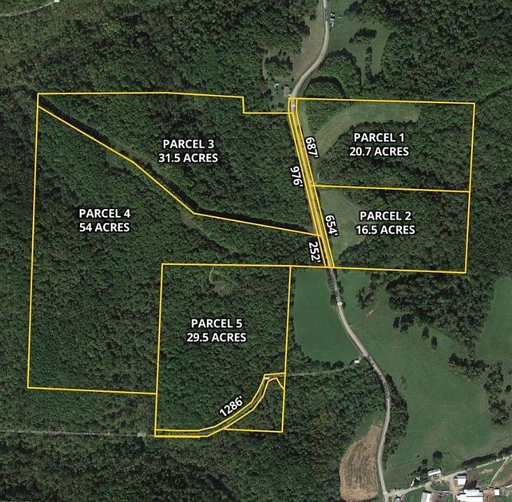 Auction 5/30- A nice larger tract of land offered in 5 parcels with over 3,800’ of road frontage. From open hilltop sites to private wooded tracts, this farm offers plenty. Parcels range in size from 16 to 54 acres with each parcel offering building sites, accessibility, trails, and great hunting. This land can be purchased in parcels or combinations. Feel free to walk this land at your own convenience and risk and make plans to join us for this good land auction. Terms: 10% nonrefundable down payment day of sale with the balance due at closing. 10% buyer’s premium. No financing or other contingencies, property sells “AS IS”. Any required inspections must be completed prior to bidding. Mineral rights are not available and do not transfer. Property sells subject to all articles of record. Buyer’s to pay for surveying. Announcements day of sale take precedence over all previous advertising and statements. Auction will be offered in various amalgamations, including as individual parcels