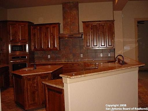 Foreclosure OPPORTUNITY REDUCED $172,500 since origianal resale offering. Fabulous open kitchen w/42in maple cabinets, 18' of granite breakfast bar open to living. 7' island with extra garden sink, upgraded frigidaire appliances, walk in pantry. 8' solid wood doors throughout, elegant 16 in Travertine tile throughout;Compliments the arched passages and 14' high trey ceilings.Extra spacious 3car garage, sprinkler system,cov porch.
