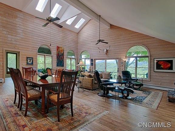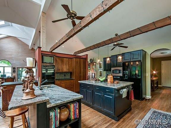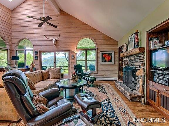 Custom contemporary made for entertaining with views for miles! Home features covered wrap-arounddeck, vaulted ceiling in open kitchen/living, master on main & hardwood floors throughout. Kitchen boasts granite counters, two islands with a breakfast bar & cabinets galore!Listen to the outdoor water feature while relaxing in the hot tub. Hike to Mt Mitchell, Pisgah National Forest borders the property.Additional adjacent property available.