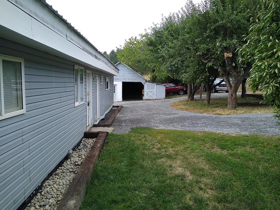 End of the road privacy. private little end of the road property. this 3 bedroom 2 bath house with gas and electric heat. has much to offer front and backyard lively with fruit bearing trees cherries ,pears ,apples etc. and also has outside utility building with power and one car garage . quiet neighborhood around hospital. and easy access to downtown. no more than a 5-10 minute walk to grocery stores post office. library ETC.