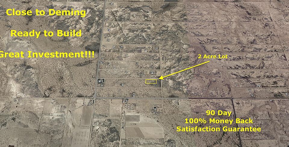Great 2 Acre Rural lot just outside of Deming, NM located southeast of the city. Deming, New Mexico is a beautiful and peaceful city with lots to offer. Adjacent to Boothill Road with utilities at the road and ready to build. Lot offers great privacy with limited neighbors. Perfect for both convenience and a bit of quality desert privacy. Very close to the beautiful Florida Mountains and other great scenic open areas. Lot Info: Deming Ranchette Unit 110 Blk 05 Lot 17, 18, 19, 20 APNS: 3036144319459, 3036144308459, 3036144296459, 3036144285459 Excellent region for history buffs, rock climbing, hiking, rock collecting, nature viewing, land investment, gift for children, building a home, having a get-a-way spot and so many other great possibilities.... Many people are drawn to this area for its diversity in plants and birds. It is a truly unique desert landscape with beautiful sunsets and wide-open spaces. The entire region is filled with wildlife, flowers, desert plants, incredible rocks and minerals, and the cowboy way of life that has existed here for over a century. Own this unique piece of land before prices go up. Land around Deming is rare and they aren't making any more of it!! This could be a great gift, investment or something to pass down to your children. Our experience with Zillow is that their realtors don't respond well or at all to their land listings, so if you have questions make sure to reach out directly to me the owner, Bradyn Meadors @ 801-828-6837 or Northstaracquisition@gmail.com. Owner Finance Terms: $99 down, $75/month for 36 months Cash Price: $1,750