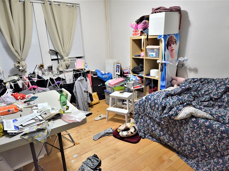 Studio, 1 bathroom, hardwood floors, ceiling fan, high ceilings, laundry in building, heat and hot water included.