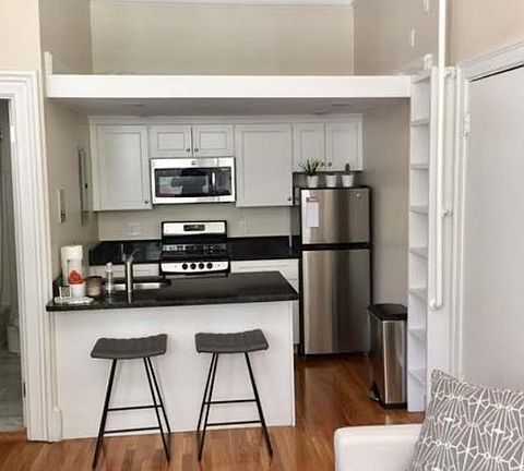 This fully furnished lofted studio is located on the first floor of a historic brownstone in Boston's Back Bay neighborhood and boasts hardwood floors, high ceilings, a good sized living area with big windows that allow in an abundance of natural light. The updated kitchen features granite counter tops, kitchen island with seating, and plenty of white shaker style cabinets, a full bath with tub/shower combo, in unit laundry and use of common roof deck with amazing views!!
