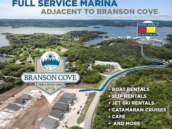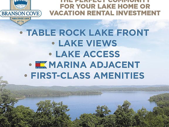 New Lake Homes! Vacation Rental Approved! Table Rock Lake Front community. Homesites with spectacular views are available! Branson Cove is a community of new lake homes with Planning and Zoning approval for vacation rental. Whether you're a savvy investor or a if you're looking for a lake getaway that produces income when you're not using it, this it the perfect opportunity! State Park Marina is located right next door! The community offers a lakefront park with a trail to the water's edge for swimming and kayaking as well as a new indoor pool & outdoor pool with waterpark slide. A variety of floorplans, homesites, and finish styles to choose from. Act now for best site selection! Estimated completion 7 months.