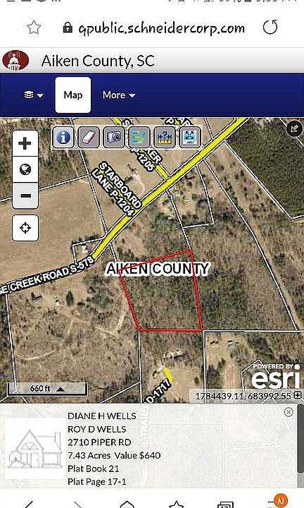 This beautiful wooded 7.412 acre flag lot is located approximately 10 miles north of aiken and North of Interstate 20 Exit 22. Property is located at the intersection of Piper rd and US 578 Bridge Creek Rd. (See plat for exact location) property is not currently addressed. ) please see on the Ariel map there is an easement to the property. This is a perfect option for a new build home, with beautiful large hardwoods, never timbered. Please call for an appt to view. For Sale by owner is willing to work with realtors. Property had a title search completed February 2020. Private property view by appt only