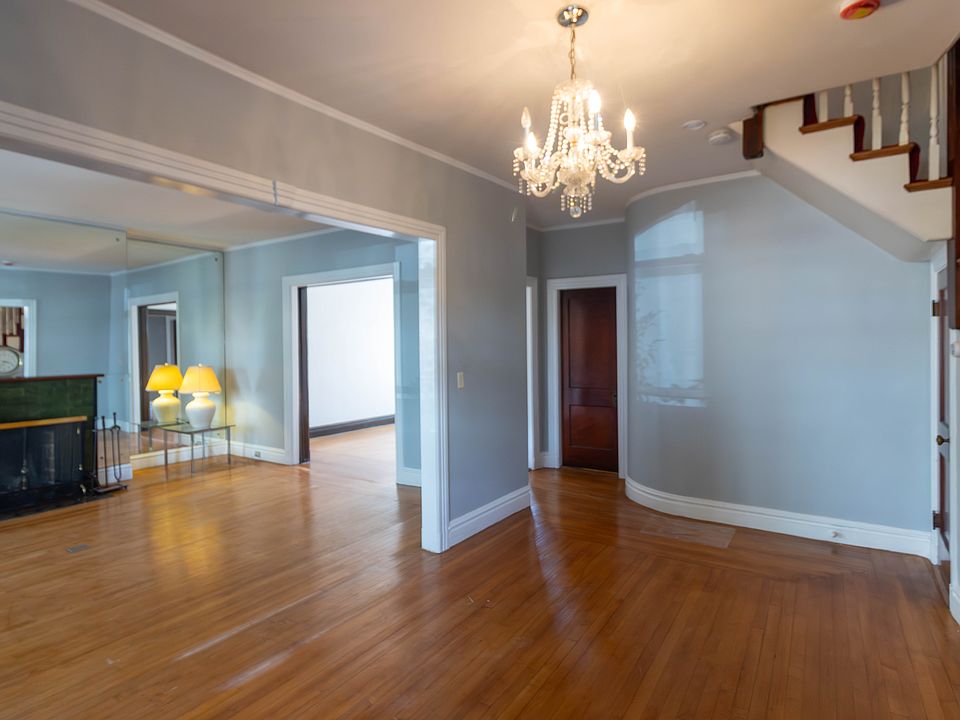 This home blends historic charm with modern updates, featuring a recently renovated kitchen with stainless steel appliances, a gorgeous newly updated bathroom, and unique architectural details throughout.