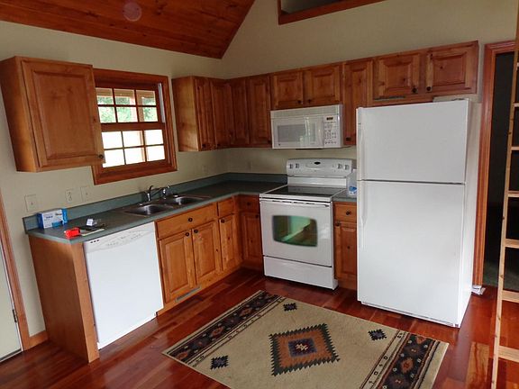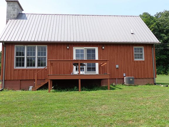 Great getaway cabin on 2.03 acres. Offers hardwood floors, carpet, and tile, as well as a stone faced wood-burning fireplace, metal roof, cathedral ceilings, heat pump w/ac, and a covered front porch and rear deck. All contents of the house convey. A small guest house with one open room and half bath on the main floor and basement shower compliments the listing.