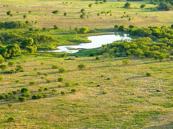 Topography and Vegetation: The property offers a diverse landscape, beginning with flat, cultivated ground in the northern portion and transitioning into tree-covered, rolling pastureland to the south. Near the center of the ranch, an elevated ridgeline provides 360-degree views of the surrounding countryside. Just below the ridge, a tributary of Briar Creek winds east to west through the property, creating natural drainages and seasonal pockets of water as it meanders through the terrain. This branch feeds the scenic 2.5-acre pond and continues through much of Young County before flowing into Lake Graham. Along the creek, the riparian corridor is rich with mature mesquite and native plum trees, framed by thick grasses that enhance the ranch's natural character.