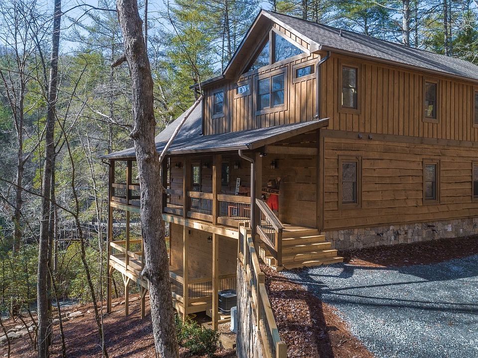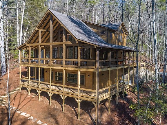 Million Dollar views from this gorgeous new construction lodge! Foundation is in and framing will begin soon. This custom home features a wall of windows & all the rustic features we love! Step inside to find an alluring great room w/ floor to ceiling stone fireplace, abundant natural light & soaring ceilings. Large covered party porch features wood burning fireplace & large deck space for outside dining. Main level bedroom features en suite bath, granite countertops & walk in tile shower. Upstairs feature a large master suite w/barn door, large bath w/walk in tile shower & private balcony to enjoy the mountain views. Full finished terrace level features a HUGE additional bedroom & bath perfect for teens or bunk room. Large wet bar, additional fireplace & great room. Stunning 180 degree views of Rich Mountain. Located between Ellijay & Blue Ridge. View photos are of actual lot. Home photos are of a similar home.