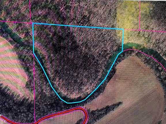 All woods on rolling hills. Buck Creek wraps around half of the property. Flat camping/build area on top of the hill at entrance. Several logging roads. Lots of deer and turkey. Proposed new road to be on east edge of property or just off property to east.