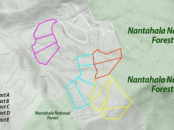 GREAT OPPORTUNITY to own 67.34 +/- acres for Development, Investment, or Family Estate. Centrally located to Highlands (+/-15mi), Cashiers (+/-17mi) and just minutes to downtown Franklin. Current owners have already absorbed the cost of installing wide 2-lane gravel roads, gated entrance, etc. Beautifully wooded with stream, large rock outcroppings and a small meadow at the peak that adjoins US Forest Service property. Many great building sites, most with good to excellent views. Some views are long-range or panoramic. Beat the heat and enjoy comfortable mountain temperatures with elevation ranging from 3,400 to a peak of 4,380 ft. Cross Katie Creek as you enter the property. If used for development, there are 4 Tracts ranging in size from 8 to 19 acres, or 13 spacious lots based on the current plat plan.