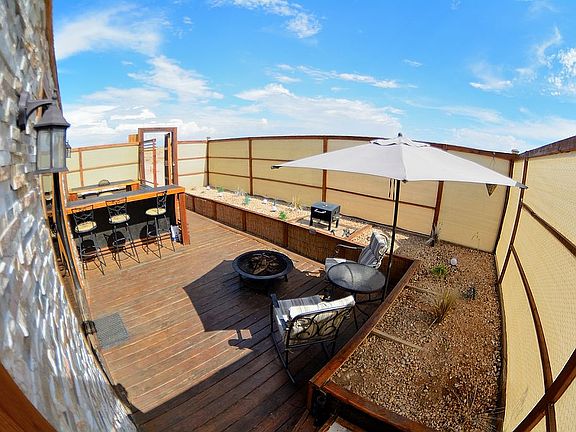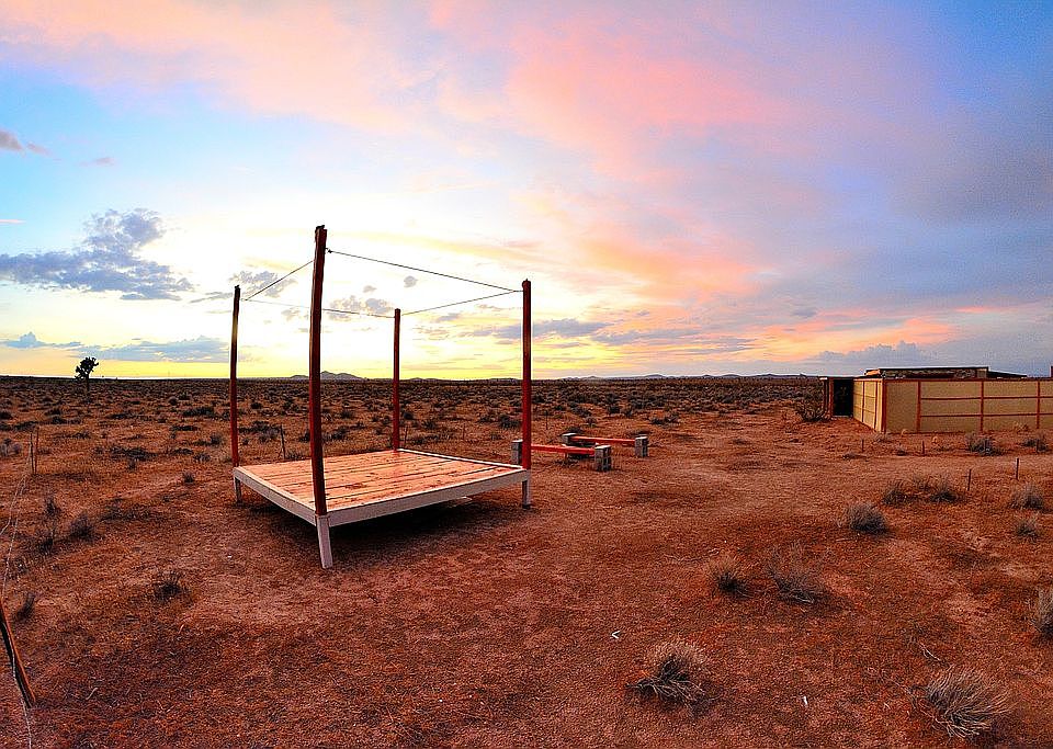 **5 Acre lot**in a secluded desert valley with an original self sustaining structure. The cabin is comfortably habitable all year round bills free. This unique and stylish dwelling has a hybrid solar & wind electricity, wifi, hot & cold water recycling water system, air conditioning as well as sophisticated security system with remote access. Plenty of space to grow and expand. Bring your atvs, friends and pets and enjoy peace of surrounding desert without any neighbors around. This beautiful piece of property is located in a secluded desert valley right off of the highway 395 and only 12 minutes drive from Silver Lakes, Helendale. Cash price of $55k or best offer.