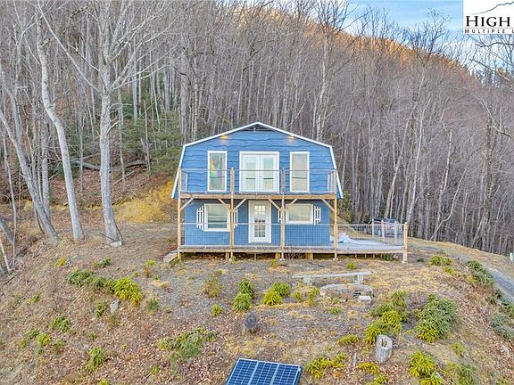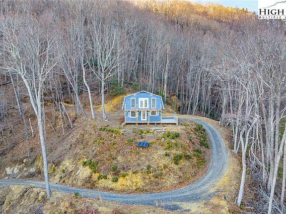 Off-Grid Home with Phenomenal Long Range Layered Views, with just under 21 acres of land. Located less than 2 miles off the Blue Ridge Parkway, across the Ashe County line into Wilkes County with easy access to the Mountain to Sea Hiking Trail. Formerly a hunting cabin and no construction permits found. Home was updated considerably within the last year including fresh interior and exterior paint, new decks for outdoor enjoyment, luxury vinyl flooring throughout, updated kitchen and bathroom, new propane range and refrigerator, new light fixtures, propane fireplace and tankless water heater. Home does not have conventional electricity and is powered by solar and propane all recently added and pre wired for a propane generator. Main level consists of kitchen, living room, 1 Bedroom, 1 Bathroom and upper level has 2 bedrooms and additional living space. Upper and lower decks to enjoy the stunning long-range views. Surrounded by nature, no other homes in sight. ATV trails and abundant wildlife, perfect for outdoor enthusiasts. Larger creek on the lower side of the property, accessible by foot or ATV. Likely does not qualify for a residential mortgage; suitable for a land loan. Additional Acreage Available if desired. Marketable timber and recent timber cruise. Approximately 20 minutes to thriving downtown West Jefferson, offering local shops, art galleries, and restaurants and breweries. Also approximately 20 minutes to both Sparta and North Wilkesboro. See today