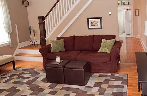 This clean, well-maintained, updated, 2 bedroom, end unit rowhome features beautiful hardwood floors throughout. Modern appliances. New heating system. Air conditioning (window units). Landscaped back yard. Modern finished basement perfect for a studio or office. All in a great central location close to the Avenue and light rail stops.