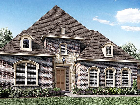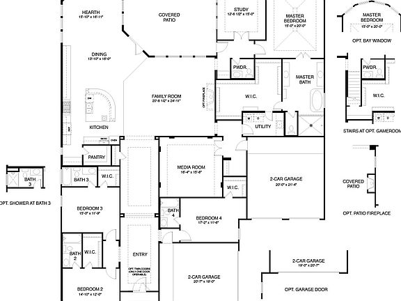 Entry leads to great room, dining area with fireplace, kitchen and catering kitchen, study, powder bath, mud room and media room off kitchen, master suite with bay window, 2 additional bedrooms, 2 full baths; upstairs game room, 2 bedrooms, 2 full baths, half bath; front covered breezeway open to courtyard and covered porch and patio.