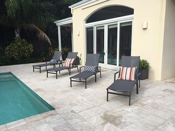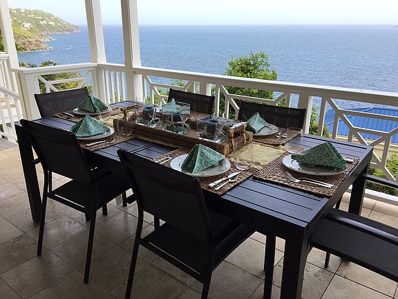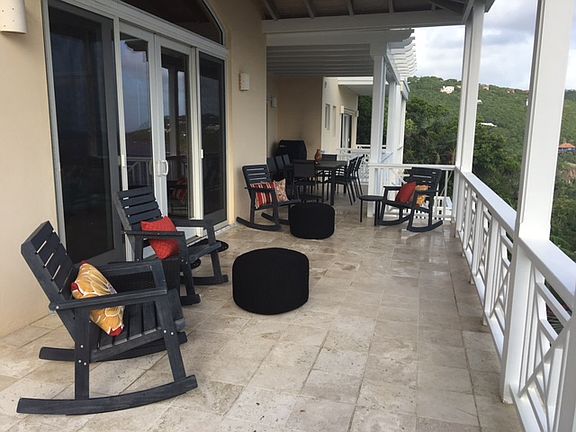 Crisp, clean, contemporary. Beautifully furnished & finished, 4 bed 3.5 bath w/ one bedroom configured as gym/office & a charming studio apartment. Private location w/ large covered gallery & pool area. Sweeping views of Hans Lollick down island. New A/C in great room, kitchen. HE washer, 2 car garage, generator. Turnkey.