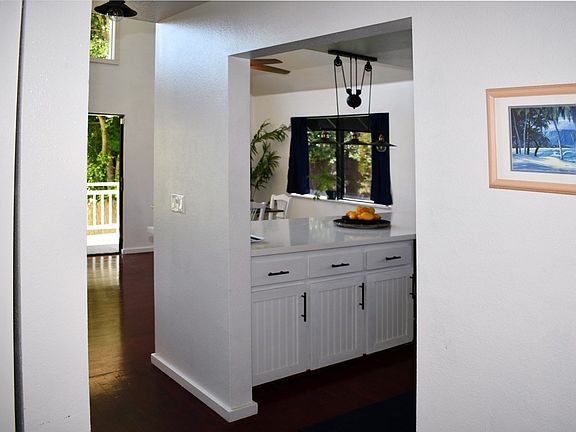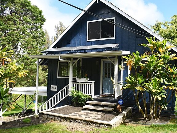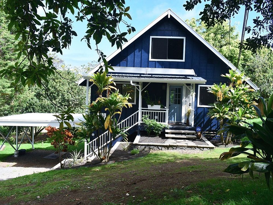Experience peaceful country living just minutes away from the central downtown area of Honokaa. You will feel the quiet serenity of the island yet have all the conveniences of living close to restaurants, groceries, schools, banks and services. This unique and charming home is located at the end of a private drive. It has been recently updated by the current owners and exudes charm and character throughout, including hardwood floors and recently replaced bedroom carpet. The interior features a light, airy living and dining area with vaulted ceilings and clerestory windows, bringing the beauty of the island indoors. A covered lanai expands across the rear of the home and can be accessed via sliding doors from either the living or dining areas. The sparkling kitchen opens to the dining room and features a large breakfast bar, solid surface countertops, farm-style sink, new fixtures, plus a large walk-in pantry. There are two spacious bedrooms on the main floor that share an updated full bathroom. The upstairs loft accomodates a cozy ensuite bedroom. The bath has been completely updated & boasts a large walk-in shower. A spacious laundry room sits on the ground floor adjacent to the carport. The back yard features an inviting patio area, lush lawn, fragrant tropical plantings plus fruit and nut trees (avocado, orange, lemon, tangerine, lime, coconut and mac nut).