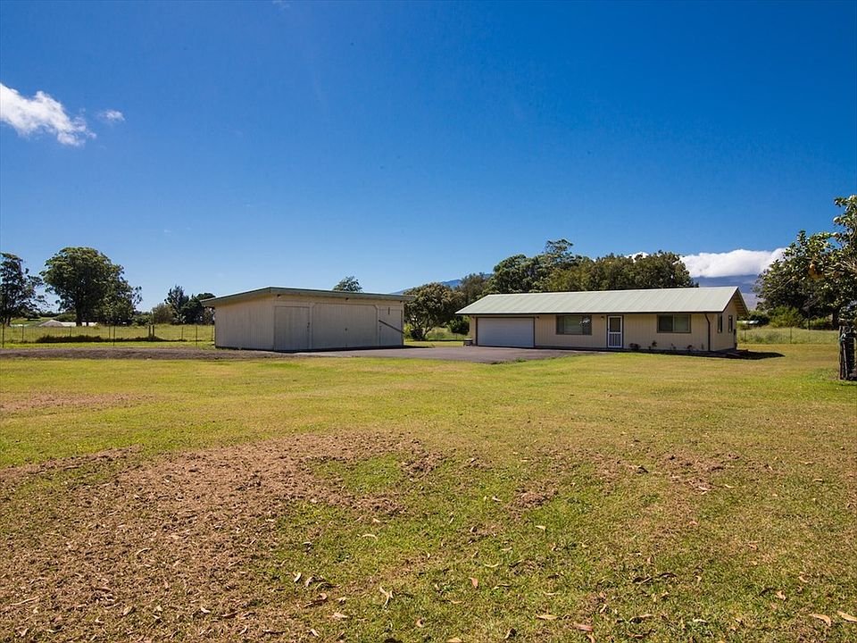 Located on 1.2+ Acres in lush Waimea countryside, this sweet two bedroom one bath home would make a great starter home or for buyers looking to downsize to a quiet, country setting. Property also includes a bonus Workshop/storage for any potential projects. Home feels extra roomy and cozy with high ceilings in kitchen and living room, covered 2-car garage, laundry room, extra closet space through hallway, as well as plus mountain and pasture views. The large yard includes fruit trees, a beautiful Koa tree for shade (and perhaps a future tree swing) and paved concrete connecting the workshop storage area and home. Private, yet only minutes away from town, schools, stores, Waimea's lively Farmer's Markets, restaurants and more! Truly unique and a MUST-SEE!