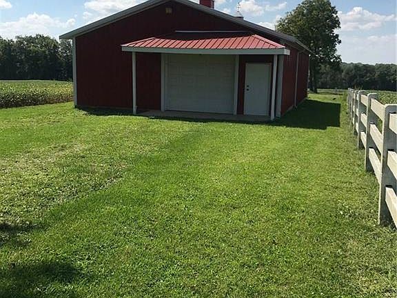 Country 3.587 acres that features a three bedroom brick ranch with 1616 square feet plus a finished 28' x 15' rec room with bar in walkout basement.Square footage of approximately 450 is not included in the 1616 figure from the auditor's page. Large covered front porch complete with columns. Features large eat in kitchen and family room and sun porch . Pole barn is 36' x 50' with work shop. All floors in barn are concrete. Driveway and parking are paved. Area for pasture . Note that real estate taxes are an estimate . Will be determined by treasure's office.