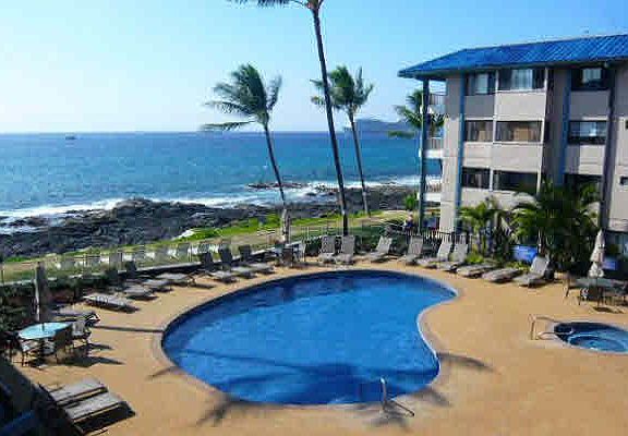 Stylishly Remodeled Third-Floor Unit with Many Upgrades. Direct Ocean View over the Pool Area to the Ocean beyond. Sold Turn-key Furnished in Tropical Decor. Kitchen has Wood Cabinets, Granite Counters, Modern Appliances, and Bar-seating. Complex has Oceanfront Pool, Spa, & BBQ Facilities. Concrete Building with Elevators & Underground Parking. Popular Vacation Rental Complex with On-site Management Option. Adjacent to Honl's Sandy Beach Park. Short 1-Block Walk to Town, Restaurants, & Shopping. Unit C-22.