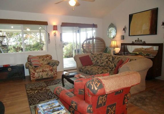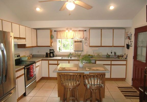 A hidden gem in the heart of Kailua-Kona. So close to town, yet insulated by lush landscaping. Built in 2001 this 3 bedroom 2 bath home is move-in ready. There is even an ocean and cruise ship view! Among the features and upgrades of this home are the following: Two solar powered attic vents are installed on the roof to extract heat from the attic. Foam insulation was sprayed in the attic areas for additional energy efficiency. Master suite is separated from the other two bedrooms. All appliances are stainless steel and recently purchased. Yard was professionally landscaped and irrigated.