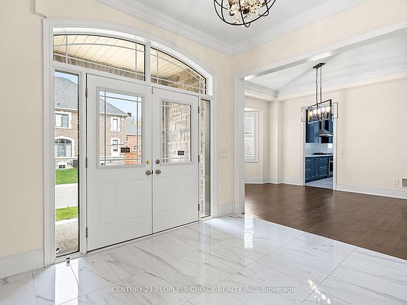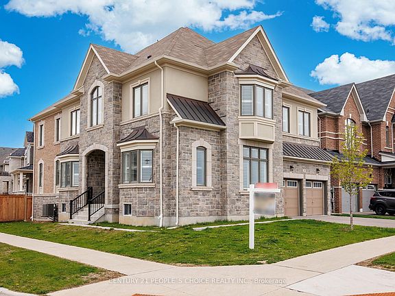 Absolutely breathtaking and impeccably upgraded, this 4,400 sq. ft. luxury residence sits proudly on a premium corner lot.Offering 4+1 spacious bedrooms and 5 washroomswith all four upstairs bedrooms featuring their own luxurious ensuite bathrooms and walk-in closetsthis home combines elegance with functionality. A versatile main floor office can also serve as an additional bedroom.Inside, youll find soaring 10-ft ceilings, a dramatic open-to-above family room with a stunning 14-ft ceiling, and rich 7-inch-wide stained hardwood floors throughout. High-end finishes abound, including elegant marble flooring, a grand 5-piece master ensuite, 7 1/4 baseboards, crown moulding, coffered ceilings, and a built-in sound system with upgraded speakers on both floors.An open-concept media room offers the perfect space for entertaining, while the expansive family room with a cozy fireplace creates the ideal setting for relaxing evenings. The gourmet kitchen is a chefs dream, featuring quartz countertops, extended-height cabinetry, and designer lighting throughout.Built by the highly regarded Countrywide Homes, the property boasts a striking stone and stucco exterior. Perfectly located across from a school and close to all amenities, this home delivers the ultimate blend of luxury, comfort, and convenience.