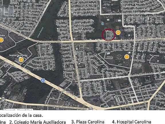 Marquesina doble, Laundry room. Dos cuartos han sido extendidos. Nuevas ventanas, pisos y verja de cemento. A minutos caminando del Colegio María Auxiliadora, Polideportivo, Hospital UPR, Plaza Carolina, y restauranes. Cerca de la Ave. Roberto Clemente, Ave Monserrate con acceso a más de 40 médicos, farmacias, bancos, panaderías. A 15 mins del aeropuerto Luis Muñoz Marín.