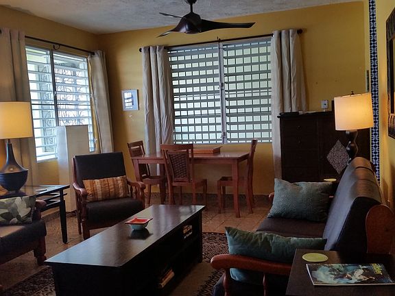 This house is located on a hillside street in the main town of Isabel II it is situated away from the main thoroughfares but only a few blocks form everything commercially related. The house interior is well appointed and the sale price includes all furnishings. There is roof access withe views to the Atlantic, as well as a secluded back patio. One could easily build a proper roof deck, or garage that can accommodate two medium sized vehicles, a separate laundry room with an on demand hot water heater, and a cistern. This is for the most part a turnkey property and a good opportunity for people who enjoy "city life", walking to the coffee shop, markets, restaurants, the Plaza, etc; but be minutes away from world class beaches.