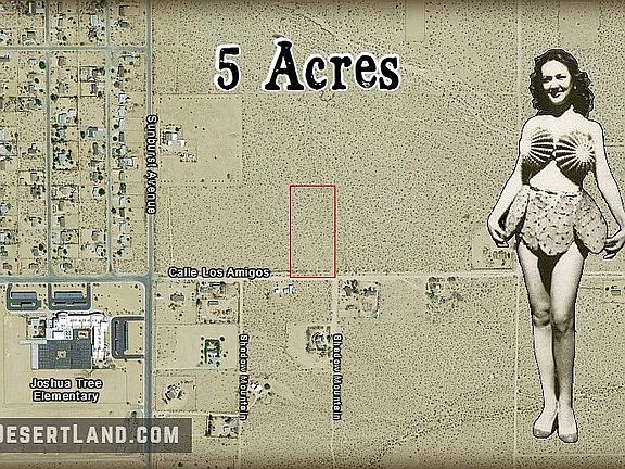 This beautiful 5 Acre parcel has glorious views of Joshua Tree National Park to the south. Close to town and Joshua Tree Elementary School, this parcel has access to electricity and water along the street (please verify with Joshua Tree Water Basin 760-366-8438). Go out and take a look! ---------------------------------------------------------------------------------------------------------------------------------------- We offer full price cash buyers a 5% discount on the price. Financing is also available. To purchase this property with financing from DesertLand, we require a Down Payment of $9700 and a Flat Rate Escrow Fee of $492. So your total start-up cost for the property on Calle Los Amigos is $10192. You can then choose a loan that best fits your budget: 5-year loan ($797 a month), 10-year loan ($482 a month), or a 15-year loan ($383 a month). We conduct a traditional escrow with title insurance. We do not require a credit check. Do not have the down payment? Look into our Down Payment Program. On that program, it is only $899 to start owning this land on Calle Los Amigos today. More information can be found on our website.