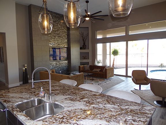 To be built - AQUAMARINE Starting at $630,500 for a 3 car garage & $722,500 for the RV Garage Option. PLUS LOT Premium $65,000 - $165,000 - Ten month build time- Standard Features on Plans:- Flat Roof plan- 8 ft Front Door - Fiberglass, paint grade- Cabinets - Beechwood, Maple Stained Shaker Style 36" Uppers 3" Molding- Group 1 Granite Tops Kitchen & Baths with Undermount sinks- Laundry room countertop Laminate- GE Profile Appliances- Tile - Allowance $2.25 sq ft - Deco Tile - Allowance $.50 sq ft- Tile floors in all locations except Carpet in Living room, bedrooms and closets- Standard Lighting traditional or Contemporary - Ceiling Fans with Lights in Living room & Bedrooms- Plumbing Fixtures - Moen Traditional or Contemporary, Brushed Nickel- 8 ft Primary doors - Paint Grade 2 Panel- 5" Baseboards 3" Casing around doors- 225 Amp Electrical Service- $5,000 Landscape Allowance- Manufactured Stone Veneer on Front Columns
