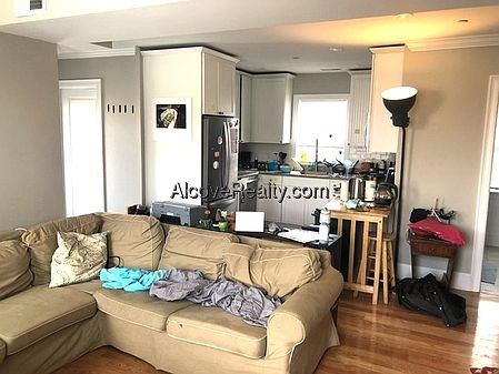 Central Square - MIT, Cambridge: Four-bed w/TWO FULL NEW BATHS. Recently updated second floor unit w/LARGE eat-in kitchen. New cabinets, granite counters, stainless appliances. Separate living room & hardwood floors thru-out the unit. Private front & back porches. Laundry in unit. Storage in basement. On-street available w/city permit. VERY SHORT walk to Davis Square redline MBTA and bike path.