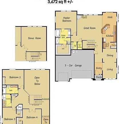 Large 4 bed 2.5 bath with huge owners suite on the main floor. Huge bedrooms with spacious bonus room upstairs. Great for next gen or lots of children. This is one of our most sought after plans. Great Cul-de-sac location in highly desirable school district. All selections have been made- quick move-in. Text or call LA for code to enter home. Builder incentives