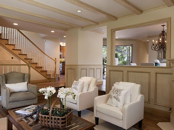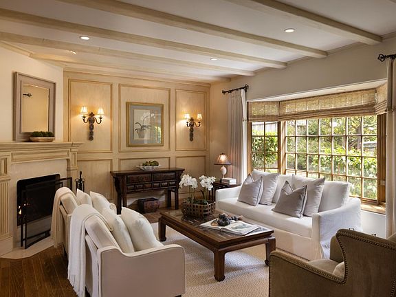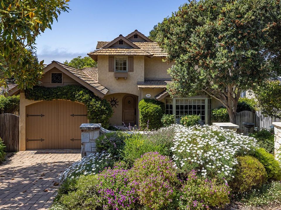 Come experience the ultimate Carmel lifestyle. Tucked away in one of the most sought-after neighborhoods, this perfect coastal retreat is ideally situated just three blocks from the beach and a short stroll to downtown Carmel-by-the-Sea. Step inside this enchanting cottage to find beautifully curated living spaces that feature rich hardwood floors, elegant crown molding and recessed lighting throughout. The cozy living room welcomes you with a gas fireplace and bay window that frames the vibrant front garden, and the chef's kitchen is a culinary enthusiasts delight complete with granite counters, breakfast bar, high-end appliances and wine fridge, while the formal dining room offers a refined space for entertaining. The primary bedroom suite is a serene escape featuring soaring ceilings, seating area, west-facing balcony and spa-inspired bath with jetted soaking tub and stall shower. Two ground-floor bedrooms offer flexibility and share a bath with a luxurious steam shower. French doors open to a private outdoor sanctuary with Carmel stone fireplace, BBQ area and two inviting seating areas. Blooming window boxes, colorful gardens, artistic oak trees and a fully fenced backyard complete this magical setting making this home a coastal gem in Carmel's coveted Golden Rectangle.
