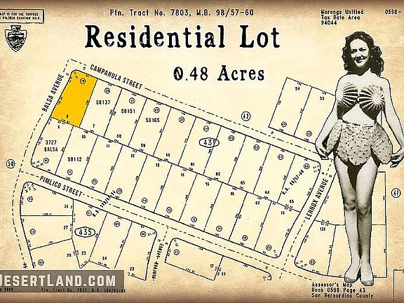 Large corner residential lot Campanula street in an established family neighborhood. Ideal level building lot on a paved road for your home or as a land investment. Close to Yucca Mesa Elementary and downtown shopping in Yucca Valley. -------------------------------------------------------------------- We offer full price cash buyers a 5% discount on the price. Financing is also available. To purchase this property with financing from DesertLand, we require a Down Payment of $3000 and a Flat Rate Escrow Fee of $492. So your total start-up cost for the property on Campanula Street is $3492. You can then choose a loan that best fits your budget: 5-year loan ($247 a month), 10-year loan ($149 a month), or a 15-year loan ($119 a month). We conduct a traditional escrow with title insurance. We do not require a credit check. Do not have the down payment? Look into our Down Payment Program. On that program, it is only $341 to start owning this land on Campanula Street today. More information can be found on our website.
