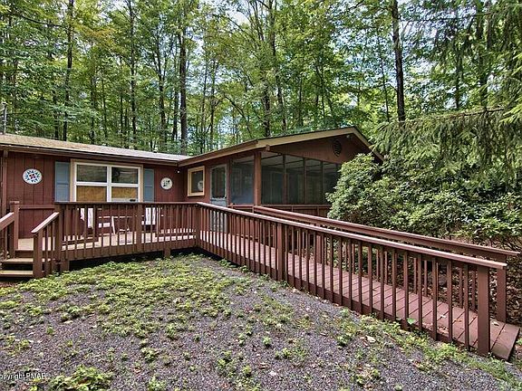 Country house in Lake Naomi sits on large lot .63 acres. Rare in Lake Naomi. Enjoy nature unplugged. Home has handicap equipped bathroom and ramp outside for wheelchair accessibility. Lovely screen porch for naps in the afternoon and dinner outside-bug-free! Quiet street with short walk to large lake access way. Walk to your canoe/kayak and start enjoying all the lake has to offer. Wood burning stone fireplace. Attached storage shed in the back of the house.
