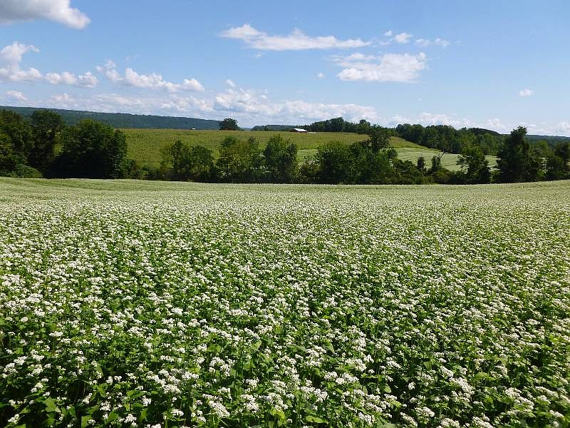 Spectacular valley views, outstanding agricultural land with 107 tillable (3 fields), certified ORGANIC. Long frontage on a season road guarantees privacy. 2 buildings - a new 340x40' 4 sided machinery shed and slightly older bunkhouse with a 10x20' storage room, 10x20' sleeping quarters. It houses a 35' camper (available separately, $4000). Good drilled well w/pump.
