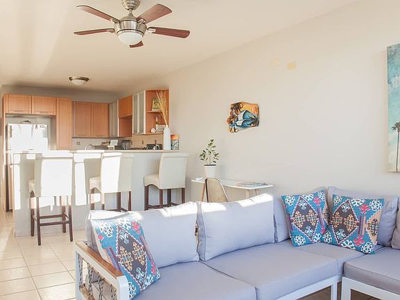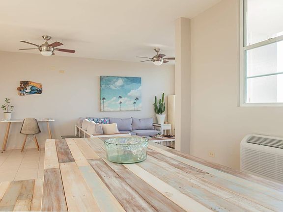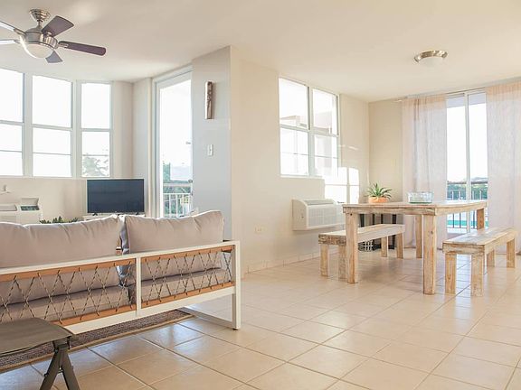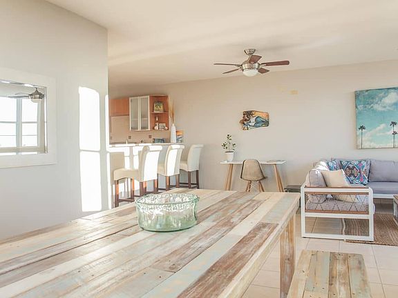 Fantastic location in Sea Beach Village, this corner penthouse unit offer an open living and kitchen area with 3 bedrooms 2 bathrooms plus a large rooftop terrace with its own 1/2 bath. Fully remodeled with ocean views, this is one of the finest condos in all of Rincon, Walk to one the best beaches, or walk to the downtown plaza. Two assigned parking spaces, fully gated with secure entrance, elevator, pool and clubhouse. Short term rentals allowed. HOA $250/month. 1,357.38 sq ft.