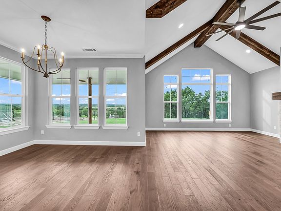 The proposed Carraway Plan! This beautifully designed home offers a spacious open-concept layout with 3 beds & 2 baths, highlighted by a large island that connects the kitchen to the living & dining areas, all bathed in natural light from abundant windows. Take advantage of NO PAYMENTS while you build with Zeal Home Builders! This plan is fully equipped with all the features one would expect from a custom home, including split bedrooms, spacious porches, custom cabinetry & closets, Delta faucets, a concrete driveway, decorative mirrors, wall-mounted TV outlets, & hardline Ethernet ports. The builder has invested in high-quality details such as spray foam insulation & more. The two-car garage is thoughtfully designed with can lighting, a smart MyQ side-mount garage motor, & an auto-lock system for added security. As you enter the open concept home you have a generous living area that leads to the dining & kitchen. Luxury vinyl plank floors in the common areas with carpet in the bedrooms & accent tile in baths & laundry. The Kitchen has abundant storage, granite or quartz countertops, an eat-at-island with custom painted cabinetry, stain grade available for upgrade. The living room boasts a vaulted ceiling, while the master suite features a stylish barn door leading to a luxurious en-suite with dual sinks, a separate shower, & a soaking tub. Estimated completion 5-7 months from start to finish. With a wide range of options at your disposal, you can tailor it to suit your unique needs. Home has 3-phase inspected & a comes with 1-2-10 3rd Party Warranty for your peace of mind. This 2 acre lot features breath taking views of the famous Comanche Peak, surrounded by ranches & rural estates. 10 min to Lake Granbury Marina & 15 min to the historical Granbury Square boasting dining, shopping, local events, wineries, live music & more. Txt keyword ZHBHOME7 to 88000 for Feature list & more! Directions & lot map at zhb.homes