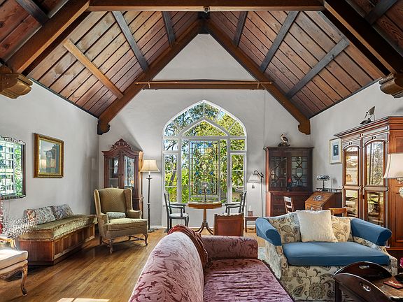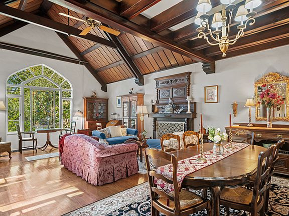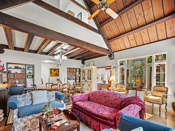 Step inside to discover a grand living room with vaulted ceilings, sunlit windows, and lush garden views, ideal for relaxing by the fire or entertaining friends. The gourmet kitchen is fully equipped with a gas range, farm sink, and everything you need to enjoy home-cooked meals. Dine in the bright breakfast nook or on the private backyard patio surrounded by greenery.