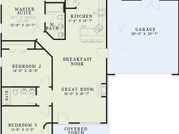Auburne (1250 sq. ft.) is a home with 3 bedrooms, 2 bathrooms and 2-car garage. Features include breakfast area, covered patio, living room and walk-in closets.