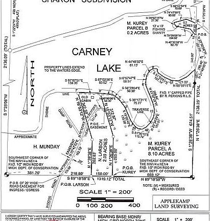 8.10 acres + 0.2 acres on Carney Lake A Paradise offering land & lake frontage for exclusive outdoor and building opportunities. Just before turning left into Carney Lake campground, turn right onto a two track dirt and gravel woods road. Stay left at each fork in the camp road, see survey at Zillow. Park your car at the locked gate. Walk around the gate. With Munday's cottage in full view, turn right onto the grass camp road that services both the 8.10 acres & the adjoining 2.09 acres. Walk past the Old Cabin on the lake. You'll see the pink ribbon that marks the 8.10 acre lot line. The lot offers panoramic Lake views. The Northeast Lake shore line corner is marked with a stake and pink ribbon. Current annual property taxes are ~$1500 $10/year Carney Lake Owner's Association Tax parcel number (22)004-106-002-10