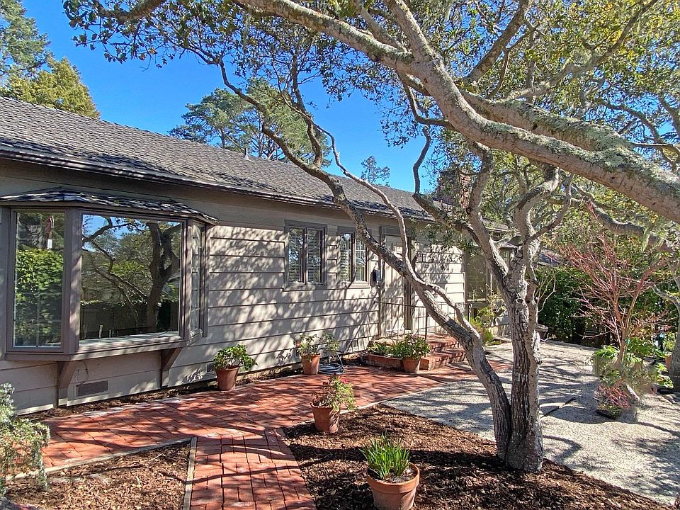 This charming, cozy, 2 bedroom 1 bath home in Carmel by the Sea is waiting for you! Snuggle up to the gas fireplace, as large windows on either side of the living/ dining room area frame the quaint backyard garden and the window seat in the living room is perfect for relaxing. The hardwood flooring in the living/dining area also enhance the warm character of the home, and are believed to be the original 1941 flooring. Both bedrooms are carpeted and have walk in closets, with the washer and dryer conveniently located in the kitchen area. The Dutch door in kitchen opens invitingly to the fully paved brick patio, with lovely hedges and mature wisteria at south end of garage. The home is a short walk to town with all the amenities Carmel by the Sea has to offer. Interior has been freshly painted and move in ready.