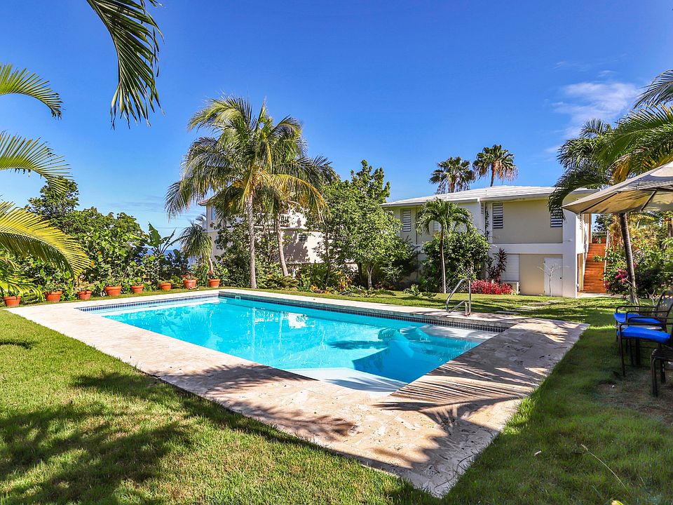 Villa Los Robles is tropical Villa with two homes within a house. Both living spaces are separate, with it's own entrance and terraces. Each home has open-air accordion style windows for cross ventilation of the warm tropical ocean breeze. The owner's suite upstairs has breathtaking views to the Ocean, Desecheo and Sunsets! Inside you will find a complete kitchen, living room, two bedrooms, and two bathrooms. Including a large master suite, has in-unit laundry, and a spacious balcony that wraps around the length of the entire unit, providing ample space to enjoy the views of paradise. The Downstairs, in addition to its entrance, has direct access to an enclosed car garage and comes complete with an additional kitchen, living space, and two bedrooms and bathrooms. The downstairs has a guest suite and a large outdoor deck surrounded by beautiful tropical flowers and plants. This gated property is enclosed by lush and exotic landscaping ensuring privacy, peace, and tranquility. Enjoy the sounds of nature, expansive views of the ocean, and just a two munite walk to gorgeous Sandy Beach and more than 6 surf breaks! The backyard of this estate comes complete with a modern saltwater pool surrounded by a coralina deck, where you can enjoy soaking up the sun and living the best of what island life has to offer all within the privacy of your own home. This unique property has limitless possibilities with enough room in the yard to build your gazebo, outdoor cooking area, or an additional guest villa.