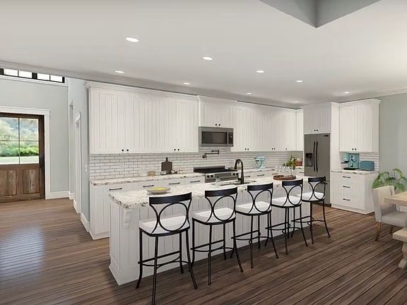 The proposed Carraway plan is an open-concept layout with 3 bed & 2 bath, complemented by an oversized 2-car garage on 9.5 acres in Paradise ISD!! Wow this home is packed with all the hallmark features of a custom home, including split bedrooms, expansive porches, bespoke cabinetry & closets, Delta faucets, a concrete driveway, decorative mirrors, wall-mounted TV outlets, & hardline Ethernet ports. The builder has prioritized high-quality details, such as SPRAY Foam insulated walls and more. The thoughtfully designed two-car garage includes can lighting, a smart MyQ side-mount garage motor, & an auto-lock system for enhanced security. Plus, the convenient Costco door in the pantry allows for easy unloading of groceries directly from the garage. The back porch is ideal for entertaining, complete with a built-in grill perfect for summer cookouts. NO HOA & NO CITY TAXES! Home has 3-phase inspected & a comes with 1-2-10 3rd Party Warranty for your peace of mind. Images depicting a model home. This proposed Carraway plan at the heart of the home lies a generous kitchen island that effortlessly connects the kitchen with the living & dining areas, all illuminated by an abundance of natural light streaming through large windows. The custom-painted cabinetry pairs beautifully with quartz countertops. Luxury vinyl plank flooring graces the common areas, while cozy carpeting enhances the bedrooms, with accent tiles in the bathrooms & laundry. The living room is highlighted by a vaulted ceiling, while the master suite features a stylish barn door leading to an en-suite bath equipped with dual sinks, a soaking tub, & a walk-in shower with all-tiled, frameless glass. Additionally, there’s a generous closet designed for two. We have this plan available to tour! Txt keyword ZHB31 to 88000 for customization details & info on this semi-custom home! Directions & lot map at www.zhb.homes