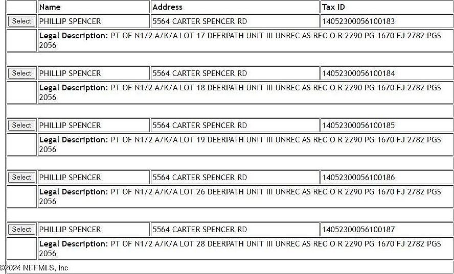 5 LOTS CARTER SPENCER Road, Middleburg, FL 32068