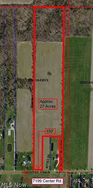 27 acres to be split. Flat and open with long views plus rear wooded acreage as well. Great horse property potential with water, gas, and electric available at the road. Located in Liverpool Township, about 8 miles from I-71. Subject to survey and parceling.