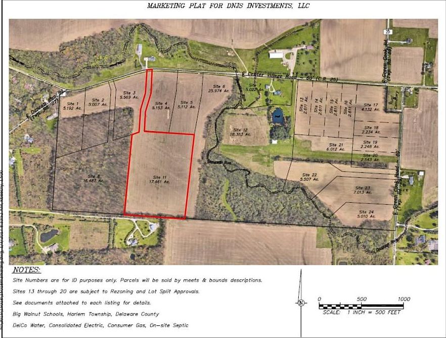 REFER TO AS SITE #11. SPECTACULAR RURAL BUILDING SITE, FLAG LOT, PERFECT FOR HORSES & ONE OF THE LARGER SITES AVAILABLE. NO DEED RESTRICTIONS. DELCO WATER, BIG WALNUT SCHOOLS, GAS AVAILABLE SOON (SEE INFO IN DOCUMENTS). 30 MINUTES TO DOWNTOWN, 11 MINUTES TO NEW ALBANY, 11 MINUTES TO SUNBURY. SURVEY AND LEGAL ARE ATTACHED IN DOCUMENTS. ONE OF THE OWNER PARTNERS IS ALSO THE LISTING AGENT.